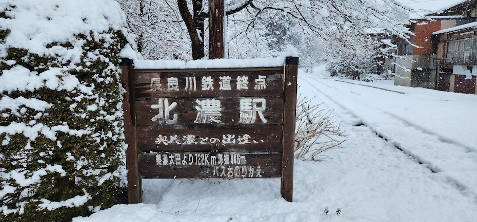 訪れた時は3月なのに郡上八幡あたりから雪が激しくなり、終点の北濃では真っ白でした。